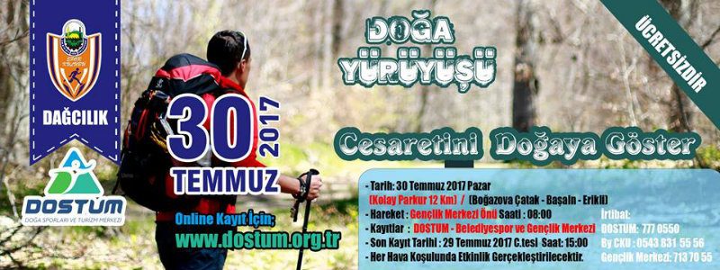 Boğazova – Çatak – Başalan – Erikli Doğa Yürüyüşü faaliyeti DOSTUM Doğa Sporları ve Turizm Merkezi tarafından düzenlenmektedir. *